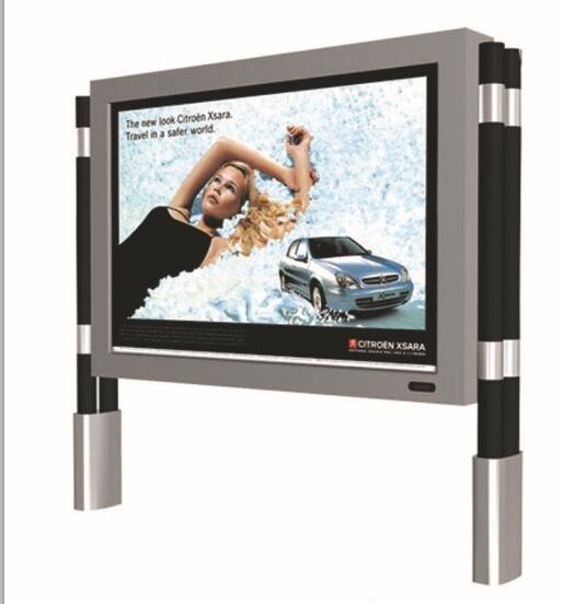 This is a new design double sided light box for both indoor and outdoor . It is no border , LED backlit , save power and fashion appearance .